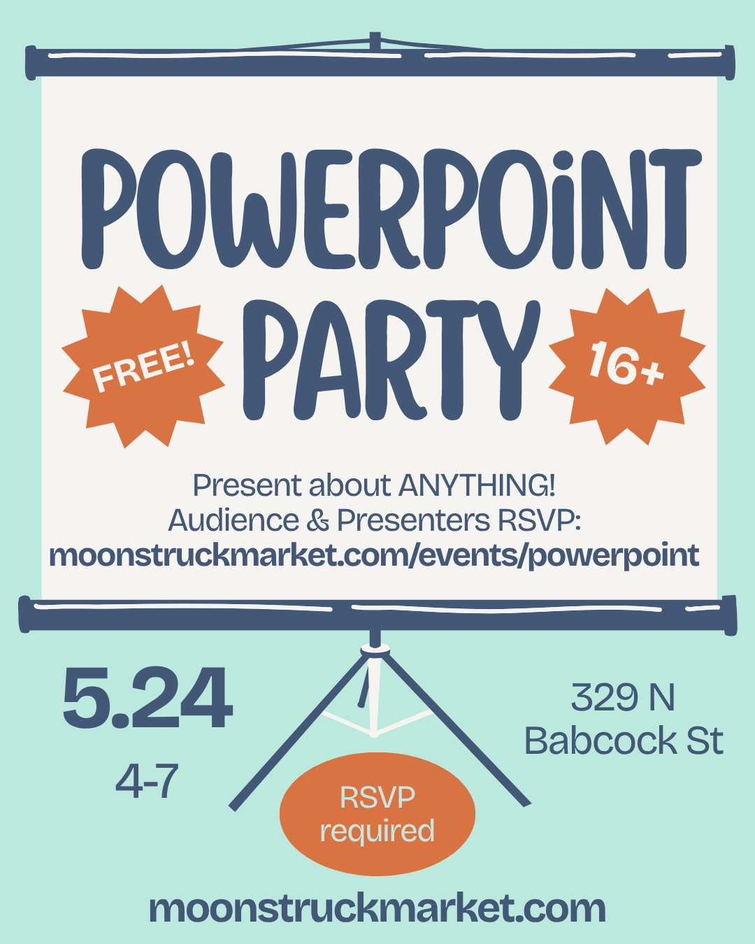 Don’t want to present? No problem! Come be part of our audience and enjoy the presentations! RSVPs are required for presenters and audience members.
